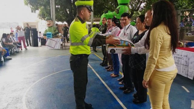 Uniformados de la Seccional de Tránsito y Transporte de la Policía Metropolitana de Cúcuta entregaron 70 kits escolares de seguridad vial, a los estudiantes del colegio Nuestra Señora de Fátima, con el fin de fomentar la prevención a los alumnos, para que se formen como futuros usuarios responsables de las vías.