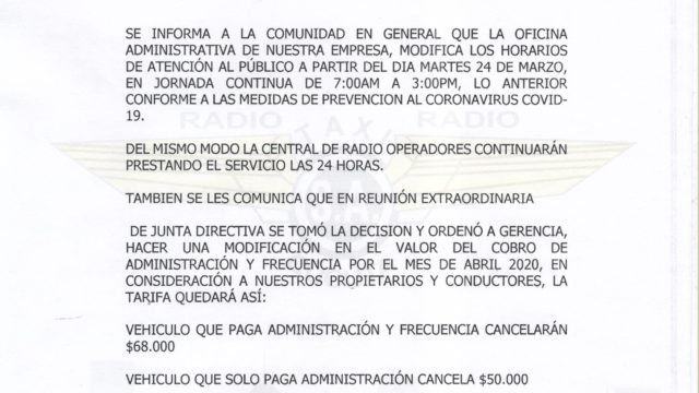 COMUNICADO POR PARTE DE LA FAMILIA RADIO TAXI RADIO S.A.