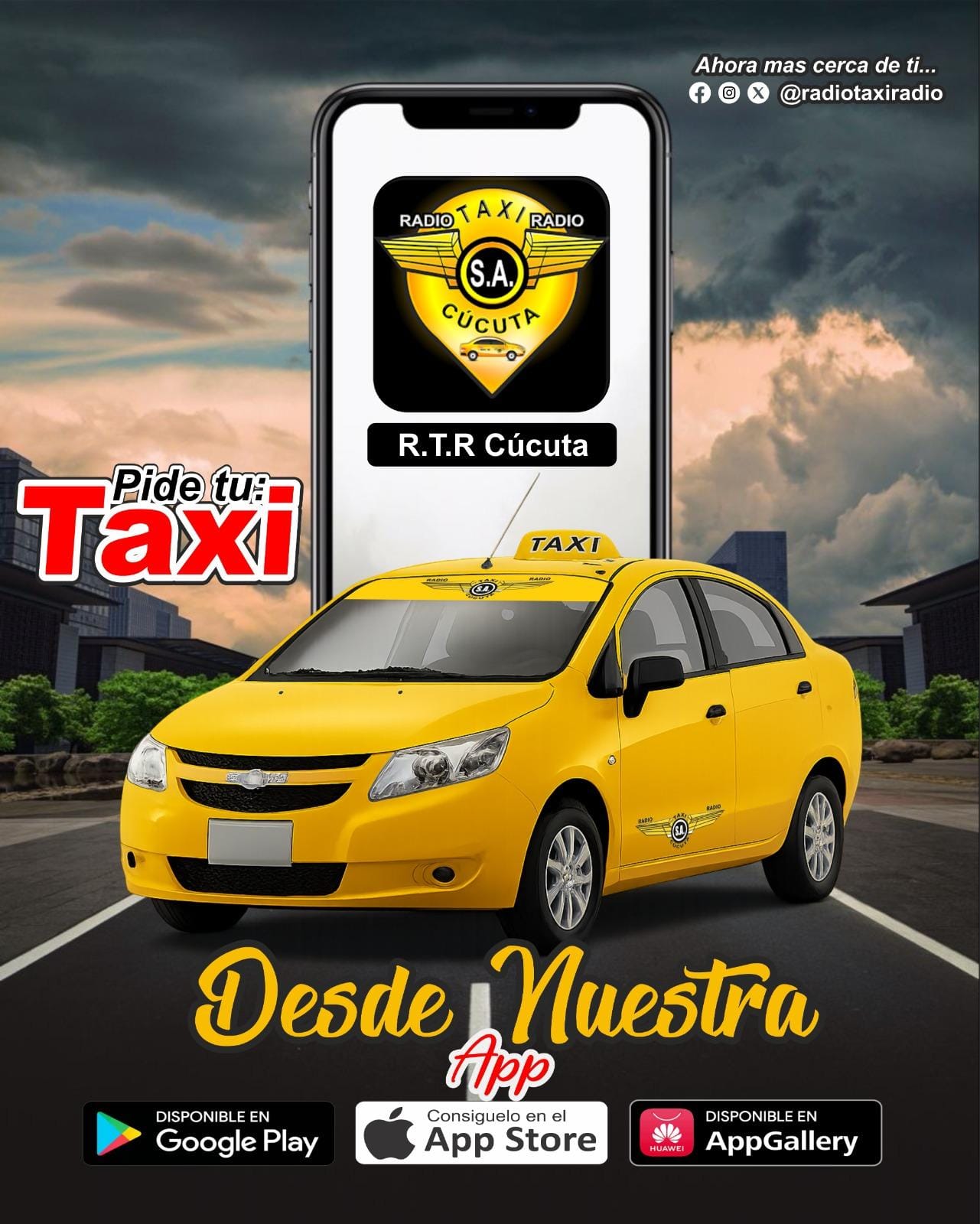 La App de Radio Taxi Radio Cúcuta (R.T.R Cúcuta) está disponible para descarga gratuita en las principales tiendas digitales: