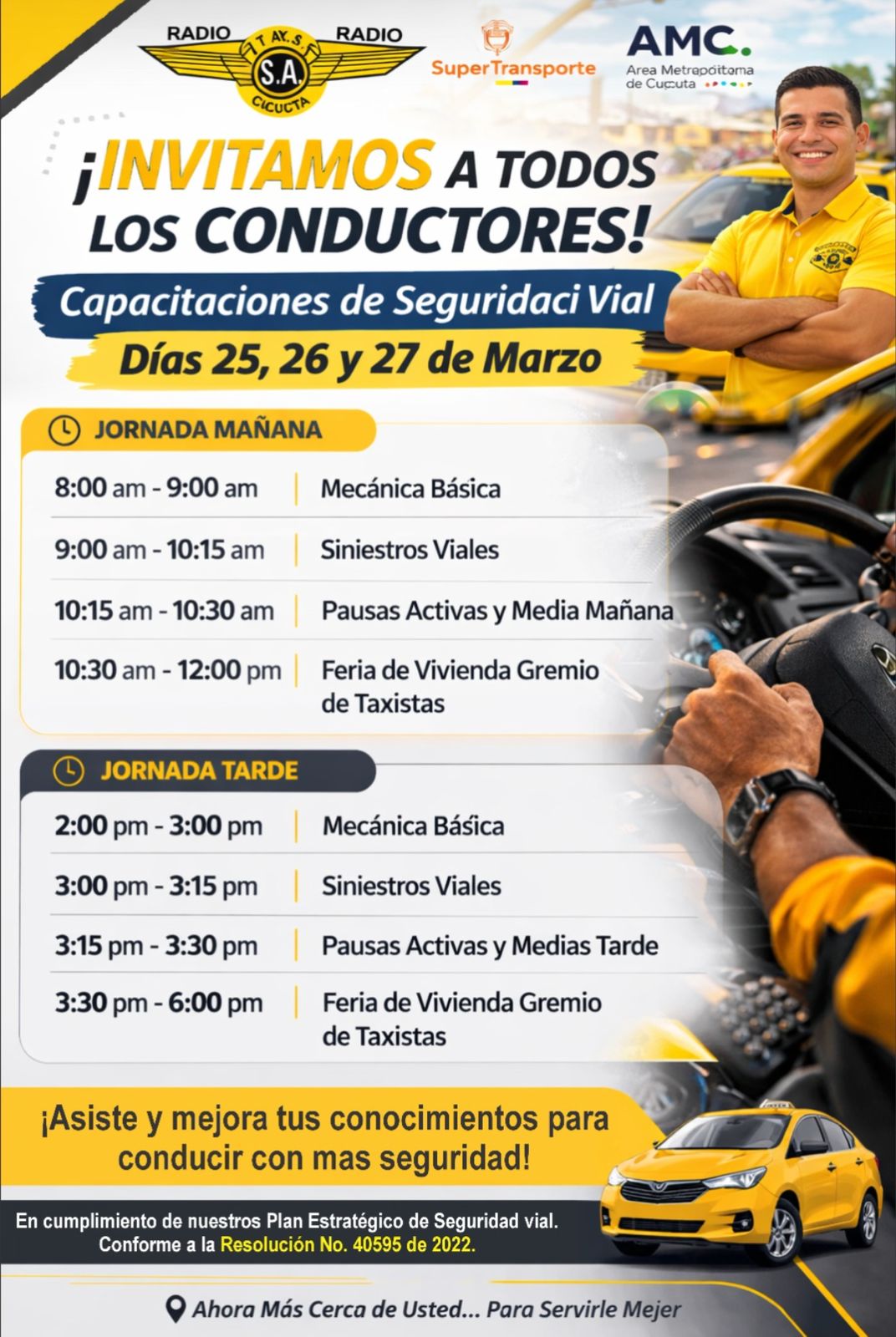En el marco del compromiso con la seguridad vial y el bienestar del gremio de conductores, se llevarán a cabo las Capacitaciones de Seguridad Vial los días 25, 26 y 27 de marzo, una iniciativa diseñada para fortalecer los conocimientos, habilidades y prácticas responsables en las vías.